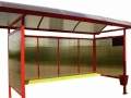 Металлические остановки городского типа. Минимальная комплектация предусматривает навес и заднюю стенку. Для защиты от погодных условий можно добавить боковые части с возможностью монтажа рекламы.